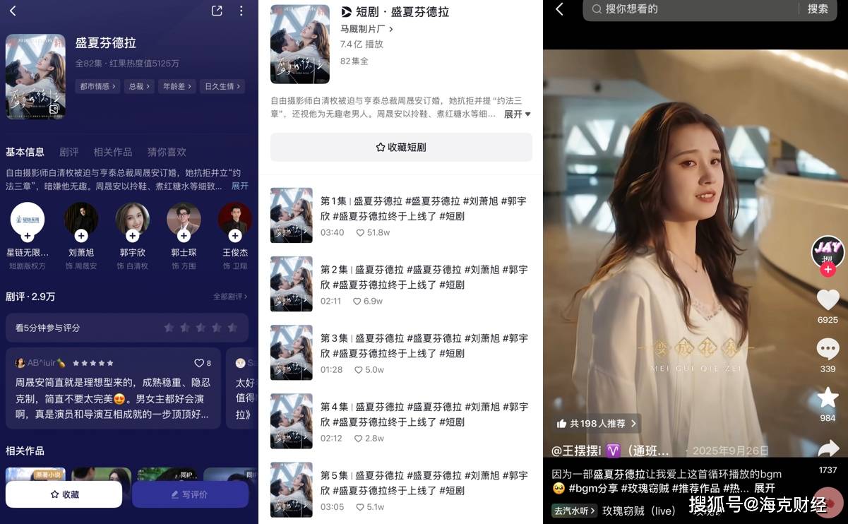 这一支撑作用的实际效果在短剧业务上体现得颇为显著。以红果短剧爆款《盛夏芬德拉》为例,该剧全网播放量超44亿次,其成功很大程度上得益于背景音乐的精准选用。据海克财经观察,《盛夏芬德拉》共选用了28首BGM,其中陈绮贞的《鱼》、伍佰的《泪桥》等因贴合剧情,在抖音等平台引发了二创热潮,用户可通过短视频左下角入口,直接跳转至汽水音乐APP收听完整版,这进一步验证了内容带火音乐、音乐反哺内容的正循环。